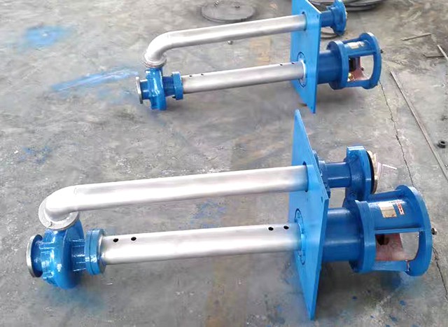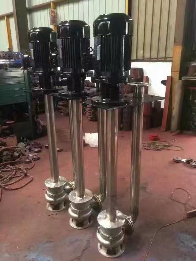 液下化工泵的形式為長軸立式離心泵,與介質接觸部分采用鑄鋼或不銹鋼制造,根據客戶要求液下深度由0.5m-6m不等,工作部分淹沒與液體中,具有使用范圍廣,效率高,無需灌液即能輸送,由于泵運轉產生的軸向力及徑向力分別由液上部分的滾動軸承和液下的滑動軸承支撐,因此運行寧靜無噪音,是集環保節能的高科技產品。